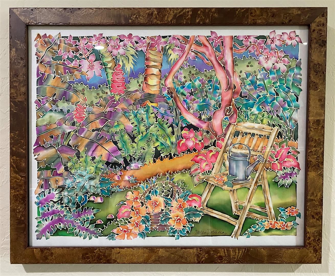 This is a stunning framed original on silk by Hawaii's Susan Patricia. It measures 16x20" UF and framed 22x18"