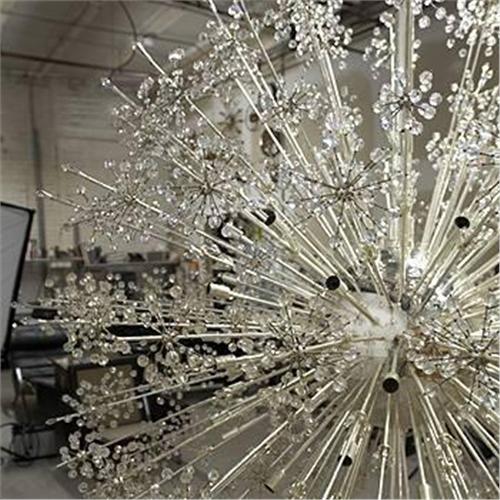 In the Manner of Hans Harald Rath<BR>chandelier<BR>Austria, 1960s<BR>chrome-plated steel, crystal<BR>60"dia<BR>An exceptionally large and complex form with intricate detailing.<BR>Literature: Glamour: Fashion + Industrial Design + Architecture, Rosa, pg. 98 illustrates a similar example<BR><BR><BR><BR><BR>