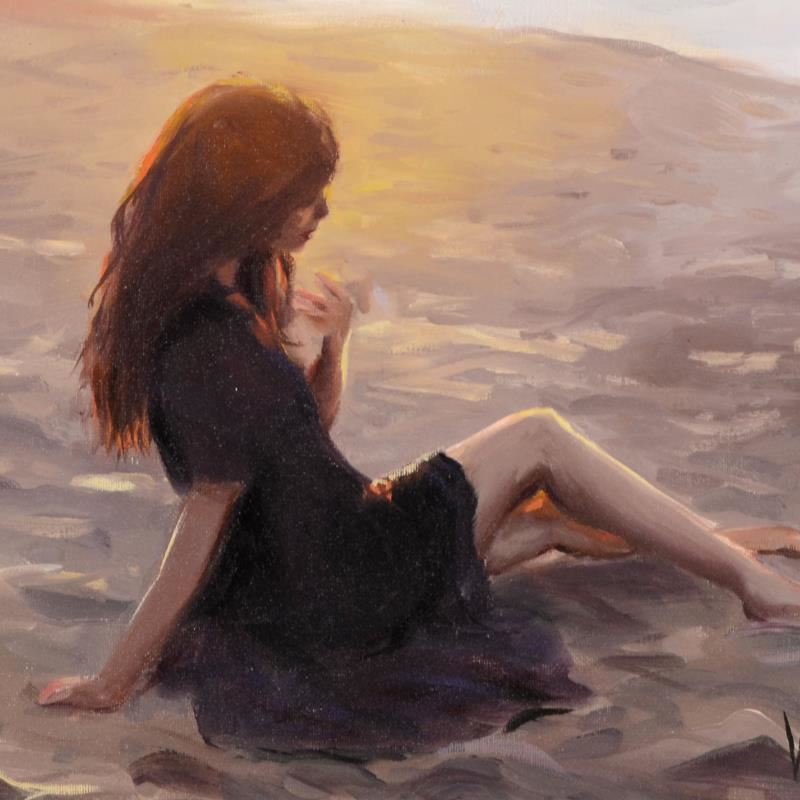 "In the Moment" is an original oil painting on canvas by Vincent Silvano, hand signed by the artist. This piece comes custom framed. Includes Certificate of Authenticity. Measures approx. 21.5" x 17.5" (frame), 15.5" x 11.5" (image).