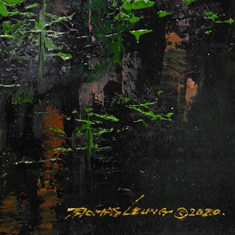 "In the Morning" is an original oil painting on canvas by Thomas Leung, hand signed by the artist. Includes Letter of Authenticity. Measures approx. 23.5" x 18" (image).