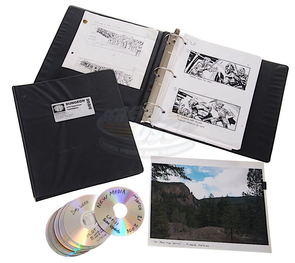 (Vivendi Entertainment, 2008) This collection of original production used material consists of a storyboard binder, a VFX supervisor candidates binder, fifteen 8" x 10" location photographs, and twelve DVDs containing footage. A rare look at the production and filmmaking. Wear from use and storage is present.