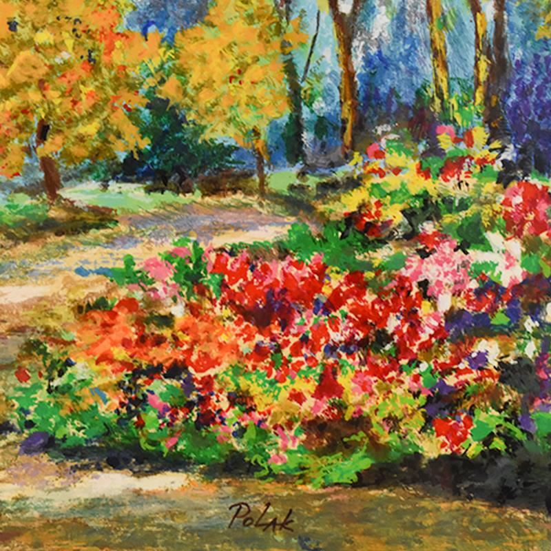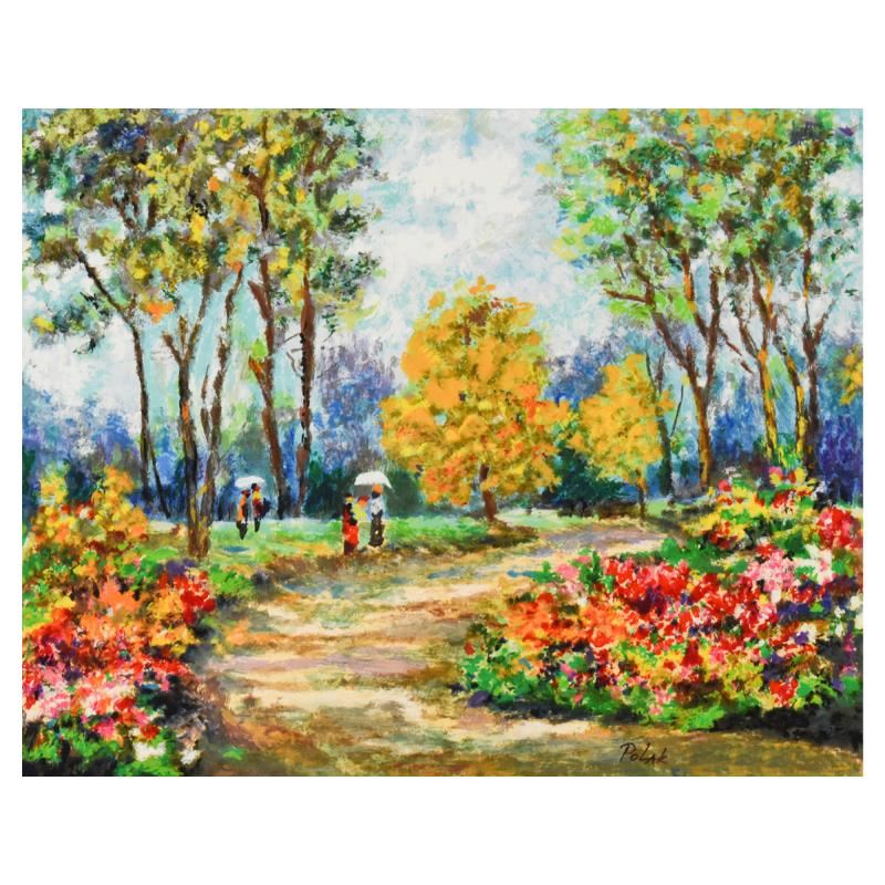 "In the Park" is a limited edition serigraph on paper by Dimitri Polak (1922-2008), numbered 403/490 and hand signed by the artist. This piece comes custom framed. Includes Letter of Authenticity. Measures approx. 23" x 20" (frame), 15" x 12" (image).