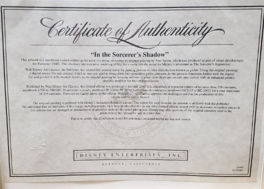 A Vintage Disney limited edition, signed & numbered on unframed canvas 14x14" unframed, art by Stan Spohn. with COA