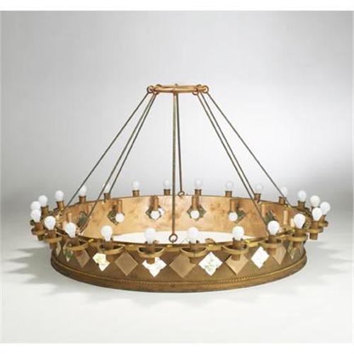 71 dia x 51 h inches<BR><BR>Condition: Scattered superficial scratches, minor points of loss to finish and soiling throughout. Armatures show loss to enamel with subsequent corrosion to steel. Wiring has not been tested. Overall good vintage condition.