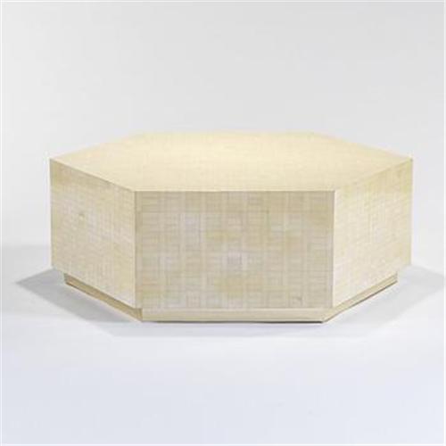 In the manner of Karl Springer coffee table USA, 1970s lacquered bone, brass 40 w x 46 d x 16 h inches