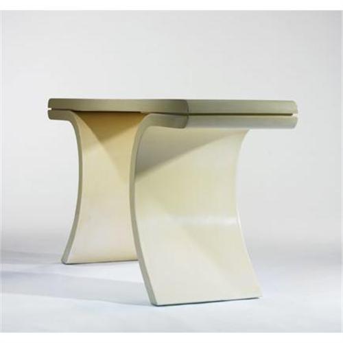 58 w x 17 d x 29.25 h inches<BR><BR>Condition: Short edge of tabletop has an approximate one-inch area of loss to lacquer. Other scattered areas of rubbing and soiling are typical of age and use. Some peeling of topcoat is visible on underside of tabletop. Overall fine vintage condition.