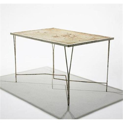 47.5 w x 32 d x 29 h inches<BR><BR>Condition: Heavy losses to enamel with subsequent surface corrosion from outdoor use and storage. Entire table would benefit from professional repainting.