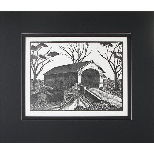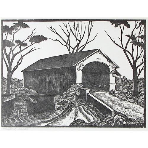Ina Annette (1901-1990) Woodblock, "Raleigh Bridge 1882", #40/200, 1946, image size 9" x 12", pencil signed