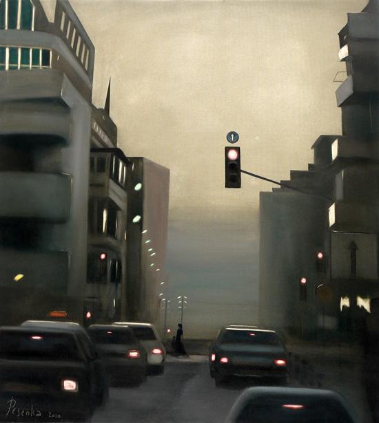 Ina Pesenka, Israeli Art, B. 1968, Frishman at Night, 2010, Oil on canvas, 100x90cm, Signed and dated., , , , ,
