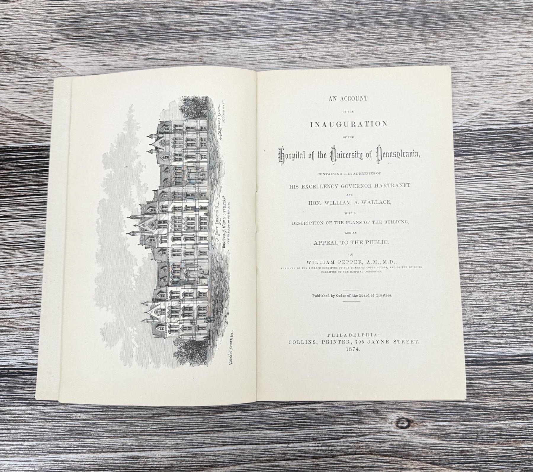 An Account of the Inauguration of the Hospital of the University of Pennsylvania. William Pepper. 1874