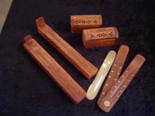 Whole assortment of incense boats and coffin boxes. You can burn incense in every room!