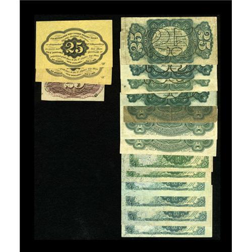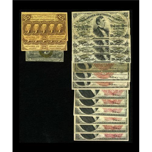 <B>Included with this lot are the following 25c notes</B></I> Fr. 1281 (2); 1286; 1294 (4); 1302 (3); 1308 (4) ; and 1309 (2). The notes in this lot range from <B>VG to AU.</B></I> <I>There will not be any returns on this lot for any reason.</B></I><BR><I>From The Plymouth Rock Collection</B></I>