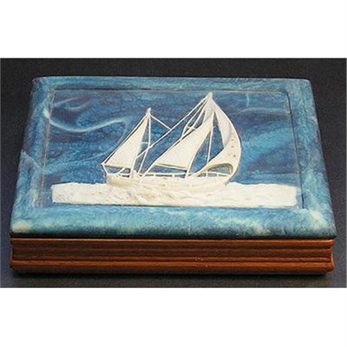 <tr><td><font size="2" face="Arial, Helvetica, sans-serif"><strong><font color="#000033">Title:</font></strong>Incolay Blue Stone SHIP & Walnut Jewelry Box</font></td></tr>
