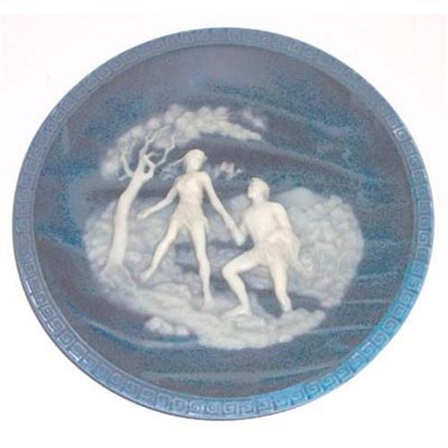 The Voyage of Ulysses series of limited edition collector plates was sculpted by artist Alan Brunettin and hand crafted by Incolay Studios on solid lapis blue incolay cameo stone. 'The Land of Phaeacians', depicts Ulysses just after his encounter with the Phaeacian Princess, is the 4th issue of 6 plates in the series closed forever on September 30, 1986. The diameter of the plate is 8.5in. and it is in excellent condition with original box and Certificate of Ownership