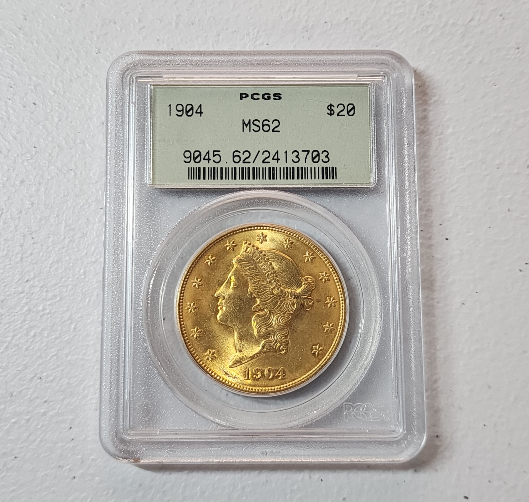 Incredible 1904 Gold Liberty Head Double Eagle $20 Coin Graded by PCGS MS 62