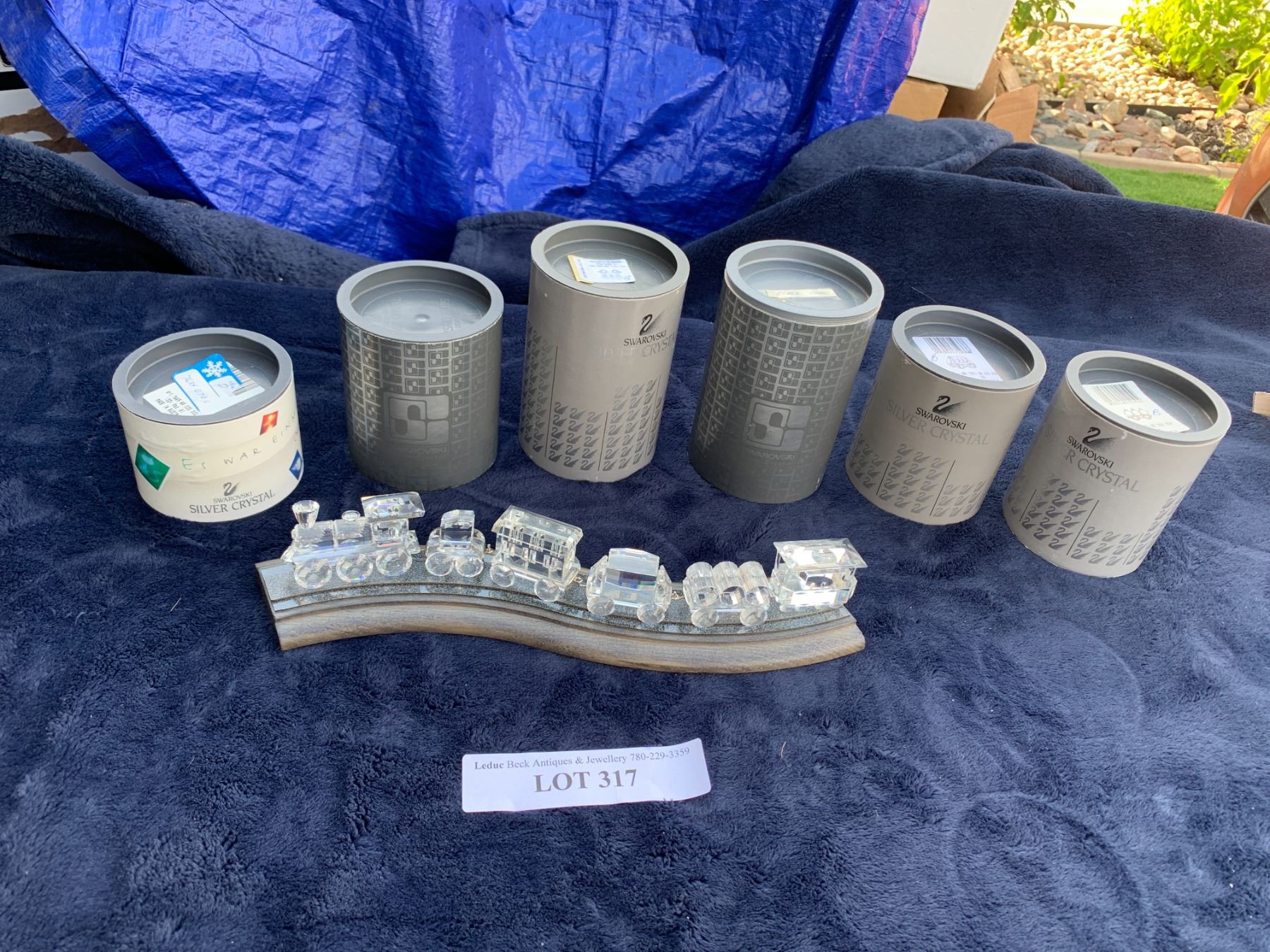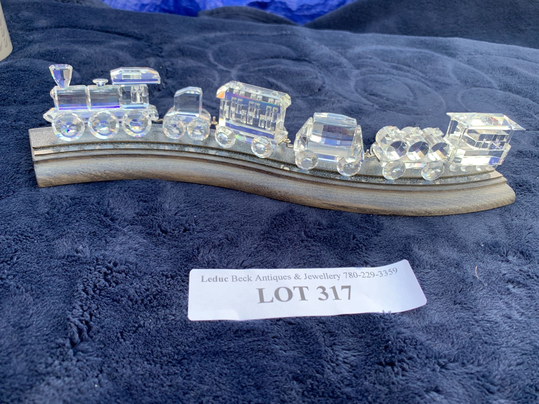 Incredible 7 Piece Swarovski Train Set with Train Track Stand