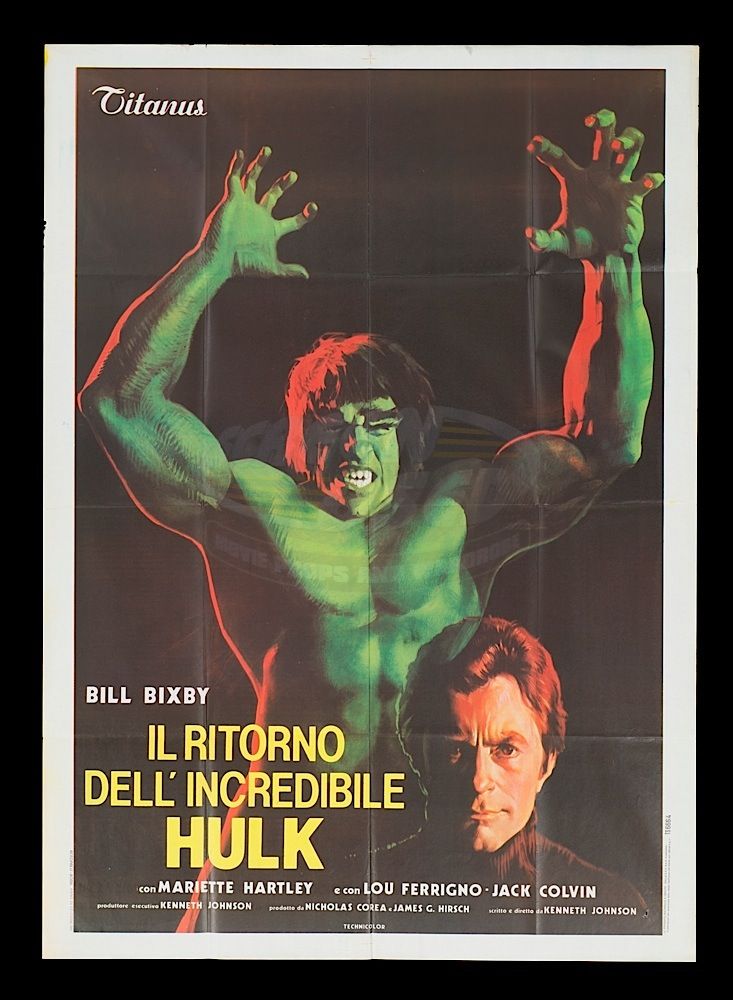 A very rare original 1981 Italian release One-Panel (55" x 39") poster. Folded in fine condition. This film was released in Italy from episodes of the American television series and was titled "Bride of the Incredible Hulk".