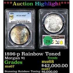 ***Auction Highlight*** PCGS 1896-p Rainbow Toned Morgan Dollar $1 Graded ms67 By PCGS.