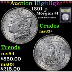 ***Auction Highlight*** 1891-p Morgan Dollar $1 Graded Select+ Unc By USCG.