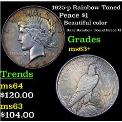 1925-p Rainbow Toned Peace Dollar $1 Grades Select+ Unc.
