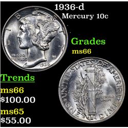 1936-d Mercury Dime 10c Grades GEM+ Unc