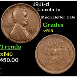 1911-d Lincoln Cent 1c Grades vf+. Incredibly scarce date. Out of an original mintage of over 12 million,