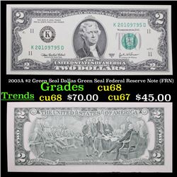 2003A $2 Green Seal Dallas Green Seal Federal Reserve Note (FRN) Grades Gem++ CU