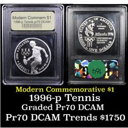 1996-P Olympics Tennis Modern Commem Dollar $1 Graded GEM++ Proof Deep Cameo By USCG. The 1996 Olympic Tennis Silver Dollar was issued was part