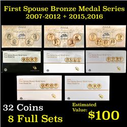 8 First Spouse Bronze Medal Series sets 2007-2012 + 2015 & 2016 32 coins