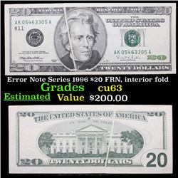 Error Note Series 1996 $20 FRN, interior fold Grades Select CU