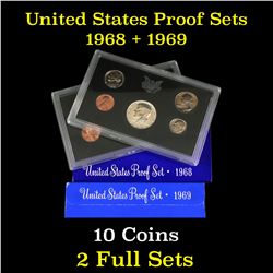 1968 & 1969 United States Proof Set 10 coins. Both sets Include 5 Proof Coins Including the 40% Silver Kennedy Half Dollar. Total of 10 ...