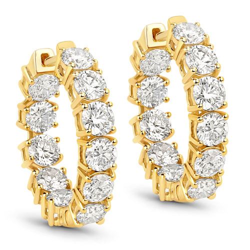 These 14 karat yellow gold huggie hoop earrings are super stunners. They feature 3.08 carats of round, brilliant-cut, colorless, VS clarity, lab-grown diamonds.& nbsp; That is over 1.50 carats per ear!!! Wow! They are approximately 3/4& quot; diameter and 1/16& quot; wide.& nbsp; They are hinged and attach to the earlobes with posts that insert into themselves with a snapping lock. Admin: Q5743/3-aae