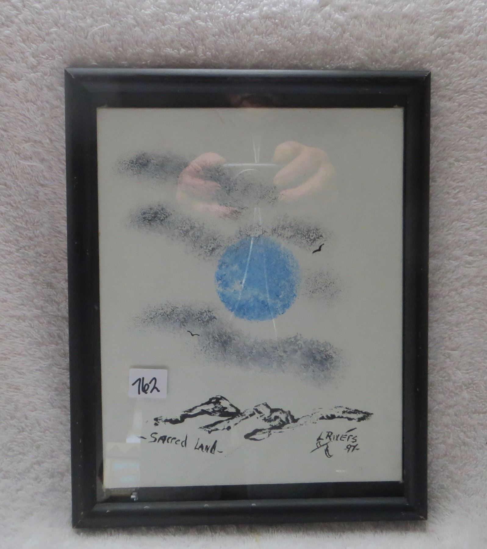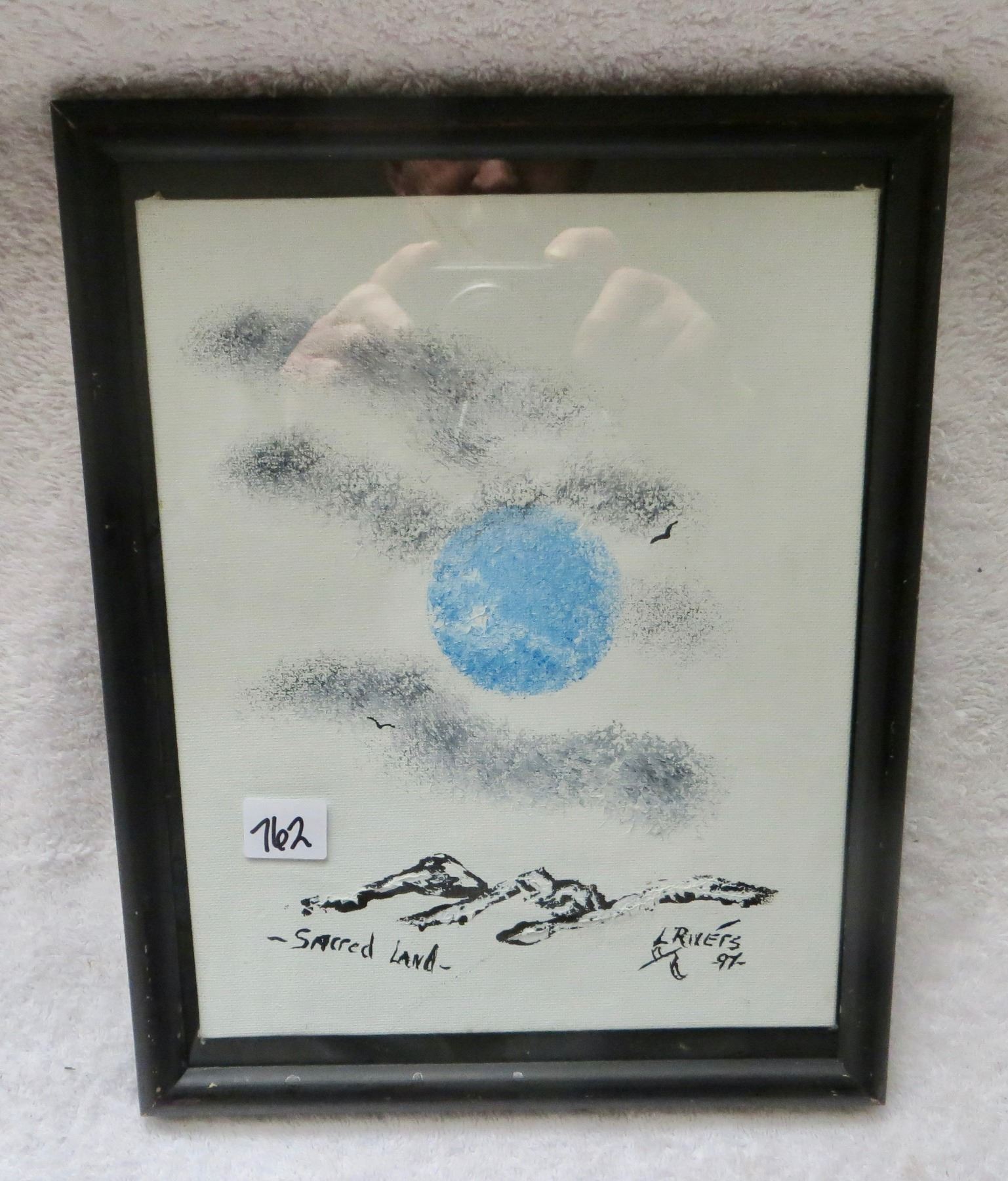 Indegenious painting signed L Rivers 1997 "Scared Land" 8x60