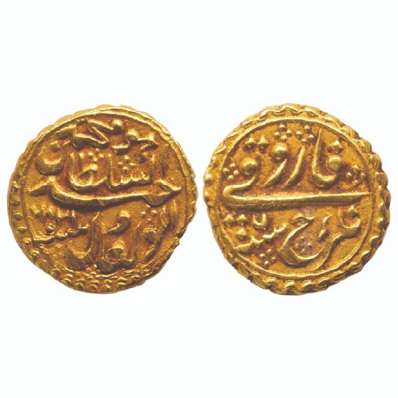 Mysore, Tipu Sultan, Gold Pagoda, 3.40gms, Nagar Mint, AM 1216/6, Persian letter ‘He’ with denomination Faruqi and mint name on rev. (KM A110), Extremely Fine, Rare.