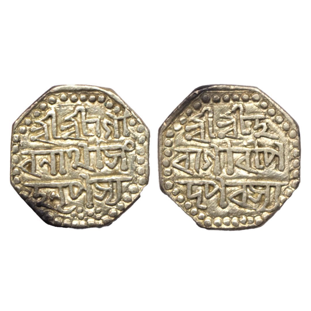 Independent Kingdoms, Assam, Gaurinatha Simha (SE 1702-1718, 1780-1796 AD), Silver 1/2 Rupee, Contemporay Token, 4.69 gms, Obverse on the coin reads. “Sri Sri Ha/ra Gauri Pa/da Parasya” Reverse on the coin reads. “Sri Sri Gau/rinatha Simha/ Nripasya” , KM # 192, very fine+, scarce.