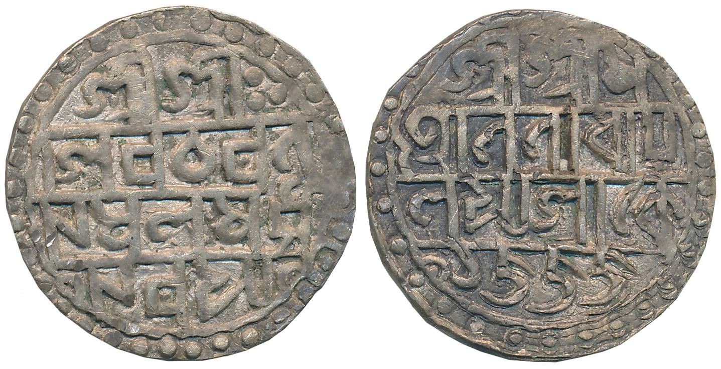 Prana Narayan, Silver Rupee, 9.74g, SE 1555, three dots on top right (KM# 74). Very fine, very rare.