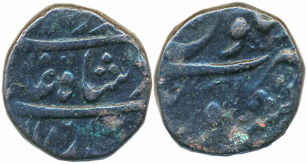 Taimur Shah, Copper Fulus, 12.94g, AH XXX6, Peshawar Mint. Very fine.