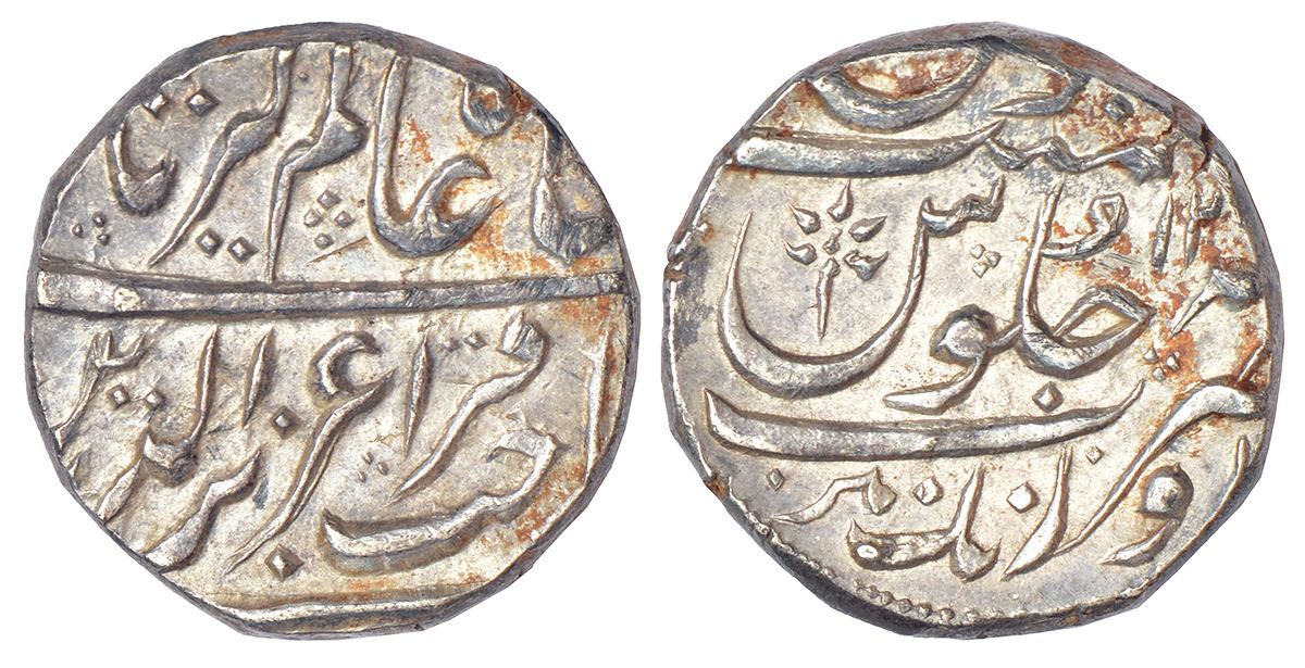 Maratha Confederacy, silver rupee, Aurangnagar (Muler) mint, in the name of Alamgir II, with legend Aziz al-Din Sahib Qiran on obverse, RY 12, M&W T2, 11.20g.