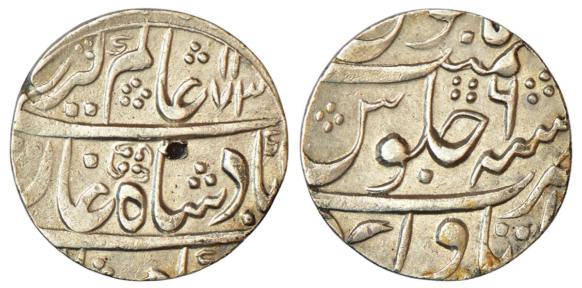 Maratha Confederacy, silver rupee, Itawa mint, in the name of Alamgir II, AH 1173/RY 6, flower like symbol on obverse, M&W T3b variety (symbol unlisted in M&W), 11.20g.