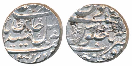 Aurangnagar Mulher Mint, Silver Rupee, 11.33g, issued in the name of Shah Alam II, ’Mu’ in Nagari in top right corner, RY 11 (KM 256). About Extremely Fine, Rare.