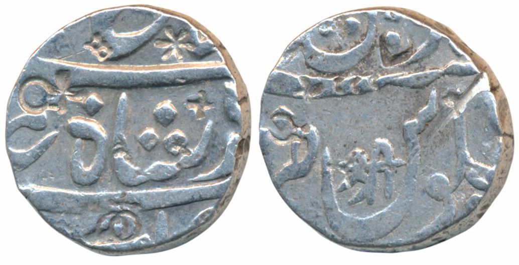 Mominabad urf Chakan Mint, Silver Rupee, 11.15g, in the name of Shah Alam II, with ’Shri’ in Nagari on rev. (KM 92). Very Fine, Scarce.