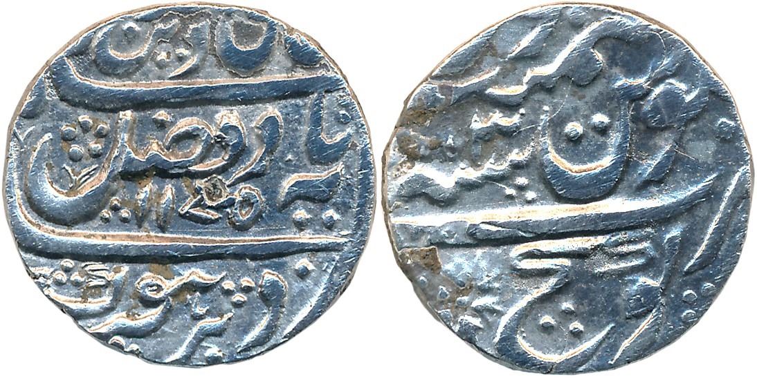 Konch, Silver Rupee,11.20g, in the name of Shah Alam II, AH 1175 /RY 3, (Not published in M&W). Very fine+, extremely rare.