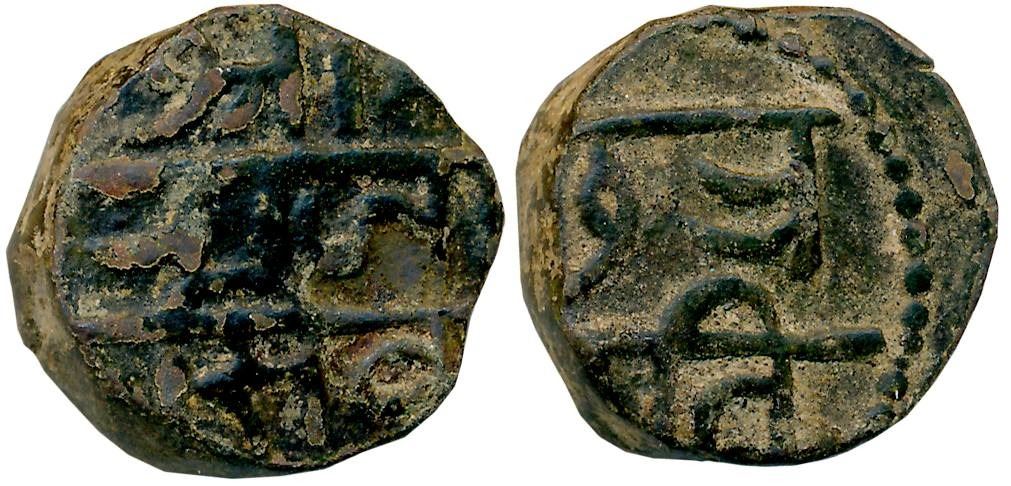 Chattrapati Sri Shivaji Maharaj, Copper Shivrai, 12.28g, “Swarajya” phase, Obv: Legend in three lines “Sri Raja Shiv”, Rev: Legend “Chhatrapati” in two lines. Both sides legend in dotted circle. Very fine+.