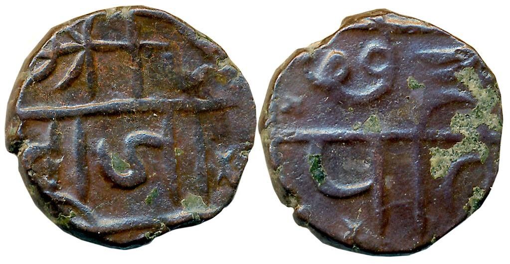 Chattrapati Sri Shivaji Maharaj, Copper Shivrai, 7.99g, Obv: Legend in three lines “Sri Raja Shiv”, Rev: Legend “Chhatrapati” in two lines. About extremely fine.