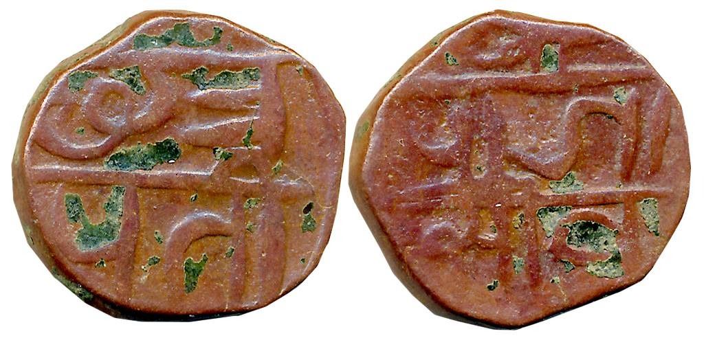 Chattrapati Sri Shivaji Maharaj, Copper Shivrai, 8.88g, Obv: Legend in three lines “Sri Raja Shiv”, Rev: Legend “Chhatrapati” in two lines. Very fine.