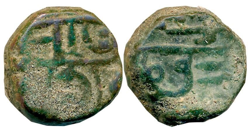 Chattrapati Sri Shivaji Maharaj, Copper Shivrai, 9.45g, “Ankushi” type, Obv: Legend in three lines “Sri Raja Shiv”, Rev: Legend “Chhatrapati” in two lines, Ankush on top of reverse. Very fine.