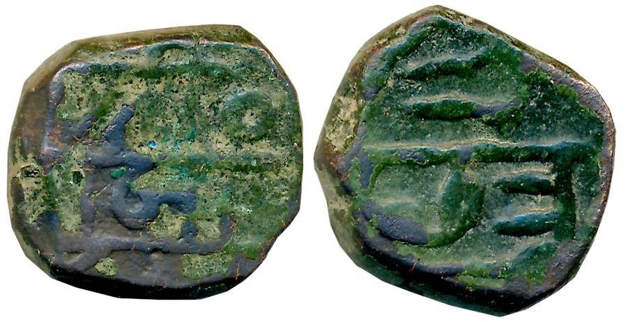 Chattrapati Sri Shivaji Maharaj, Copper Shivrai, 9.19g, Obv: Legend in three lines “Sri Raja Shiv”, Rev: Legend “Chhatrapati” in two lines. Very fine.
