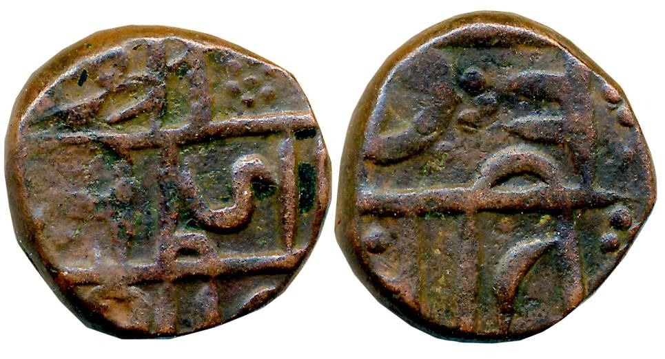 Chattrapati Sri Shivaji Maharaj, Copper Shivrai, 9.50g, Obv: Legend in three lines “Sri Raja Shiv”, Rev: Legend “Chhatrapati” in two lines. Very fine.