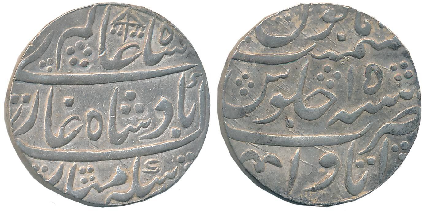 Itawa, Silver Rupee,11.24g, Broad flan, in the name of Alamgir II, RY 15, Parsol as Mint mark on obverse (M&W# T4b). Extremely fine.