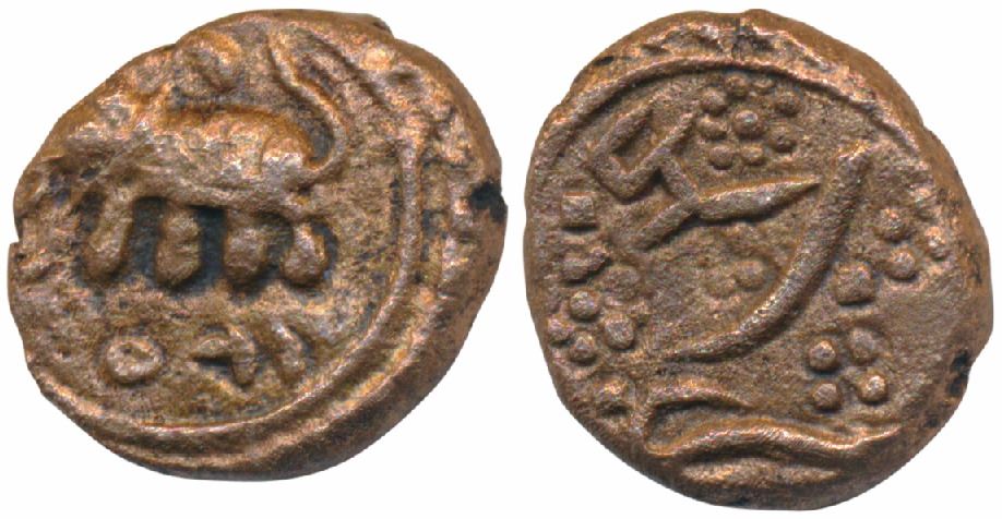 Tipu Sultan (AH 1197-1227, 1782-1799 AD), Copper 1/8 Paisa, 1.91g, obv. date AM 1225 at bottom, uncertain Mint. Very Fine+, Rare.